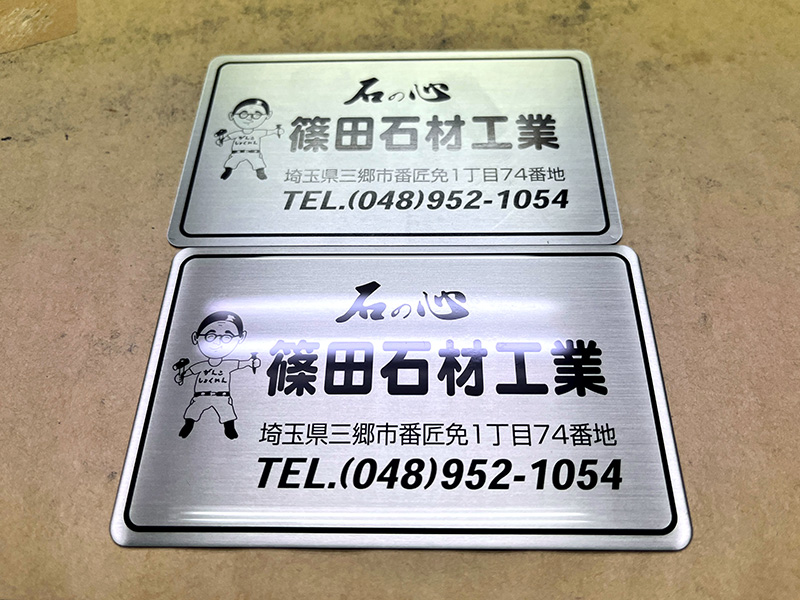 従来のブランドプレートは耐久性が弱く、墓石や自動車など屋外の過酷な環境で使用しているとすぐに文字が見えなくなっていた。剥離しづらく黄変しない、耐久性のある加工をしてほしい。