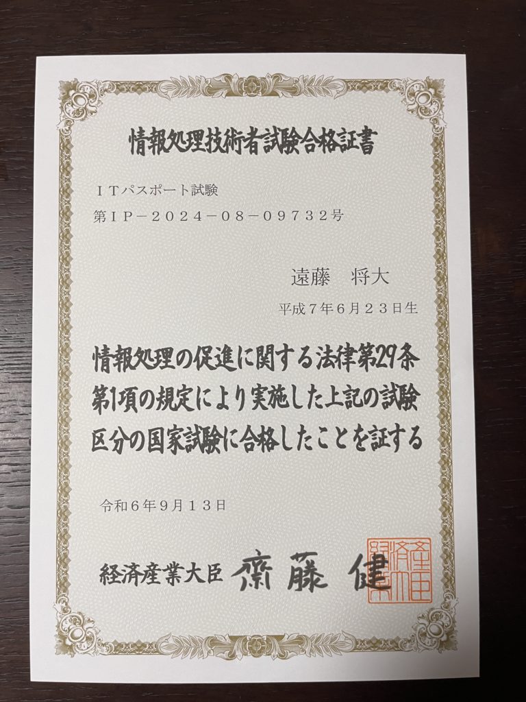 ITパスポートの合格書が届いたり